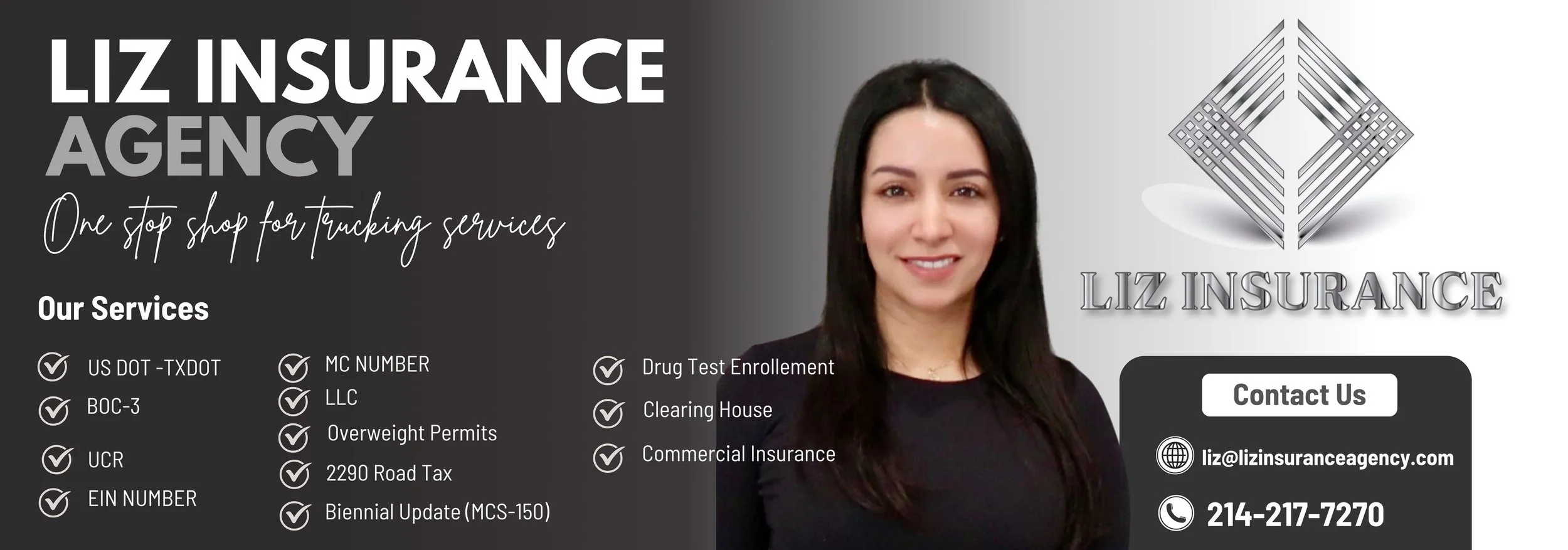 En Liz Insurance Agency, ofrecemos una amplia gama de servicios de seguros y apoyo diseñados específicamente para la industria del transporte. Ya seas un operador propietario o estés administrando una flota en crecimiento, nuestro equipo está aquí para mantener tu negocio protegido, en cumplimiento y avanzando.